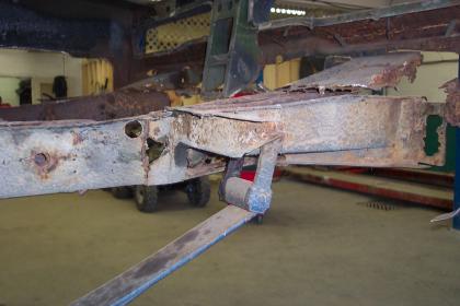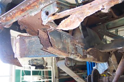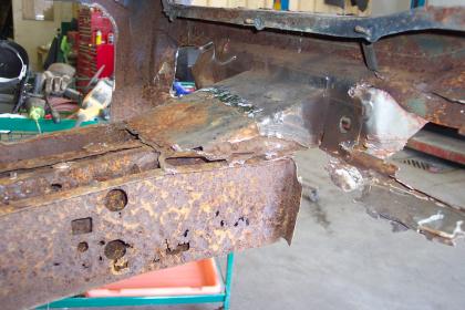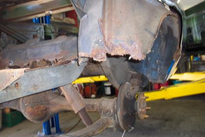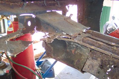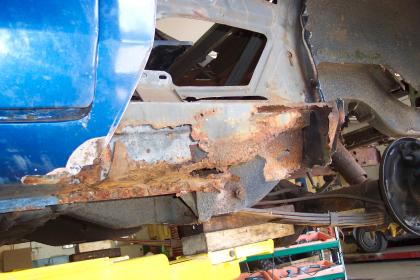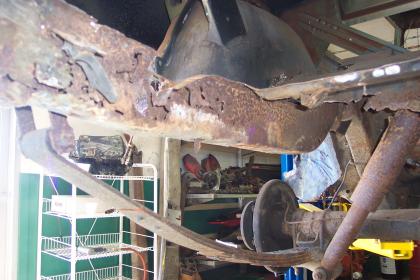 Close up of passenger side rear frame rail. |