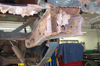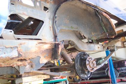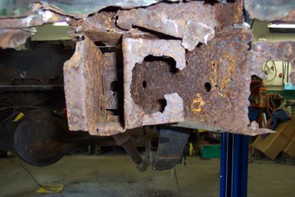 Close up of passenger side rear frame rail. |