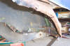 Lots of filler came off of here. A patch will be fabbed up to fix the rocker. The new quarter will cover the patchwork. |